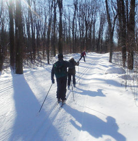 When you go off the groomed trails, it's called back-country skiing. This type of classic cross-country skiing is obviously more strenuous. People who do a lot of it generally use skis that are specially made for back-country skiing. These are a little wider and more rugged that what is often used for recreational cross-country skiing.