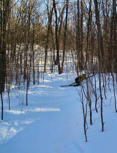 The author of this web site wiping out on a small jump at the bottom of hill at the end trail # 34.
